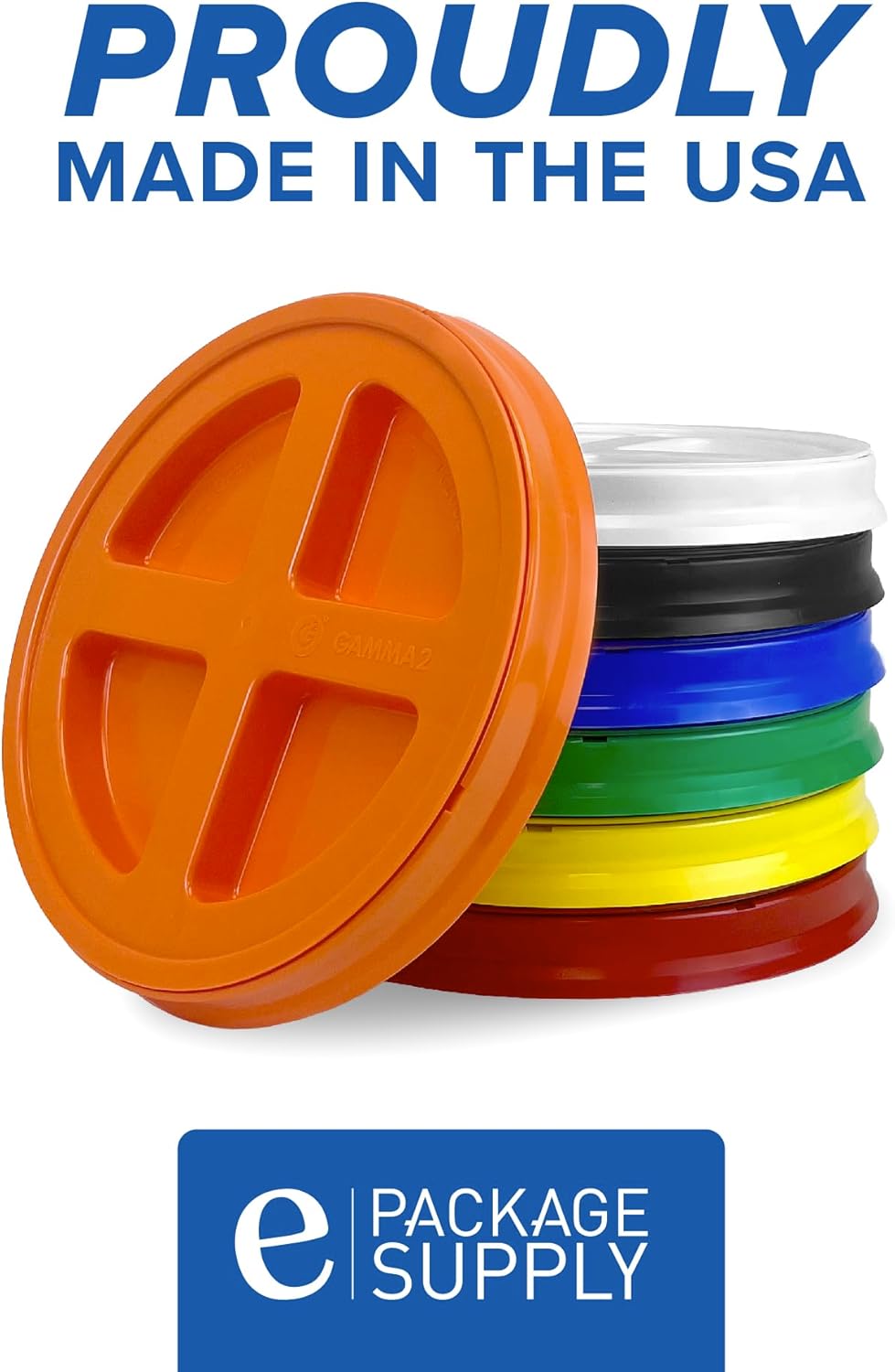 ePackageSupply Gamma Seal Lid for 3.5, 5, and 7 Gallon Buckets, Screw Seal Multipurpose Container Cover, Food Grade Gasket Airtight Lids, Premium HPDE Plastic, BPA Free, Made in USA (Orange, 6 Pack)