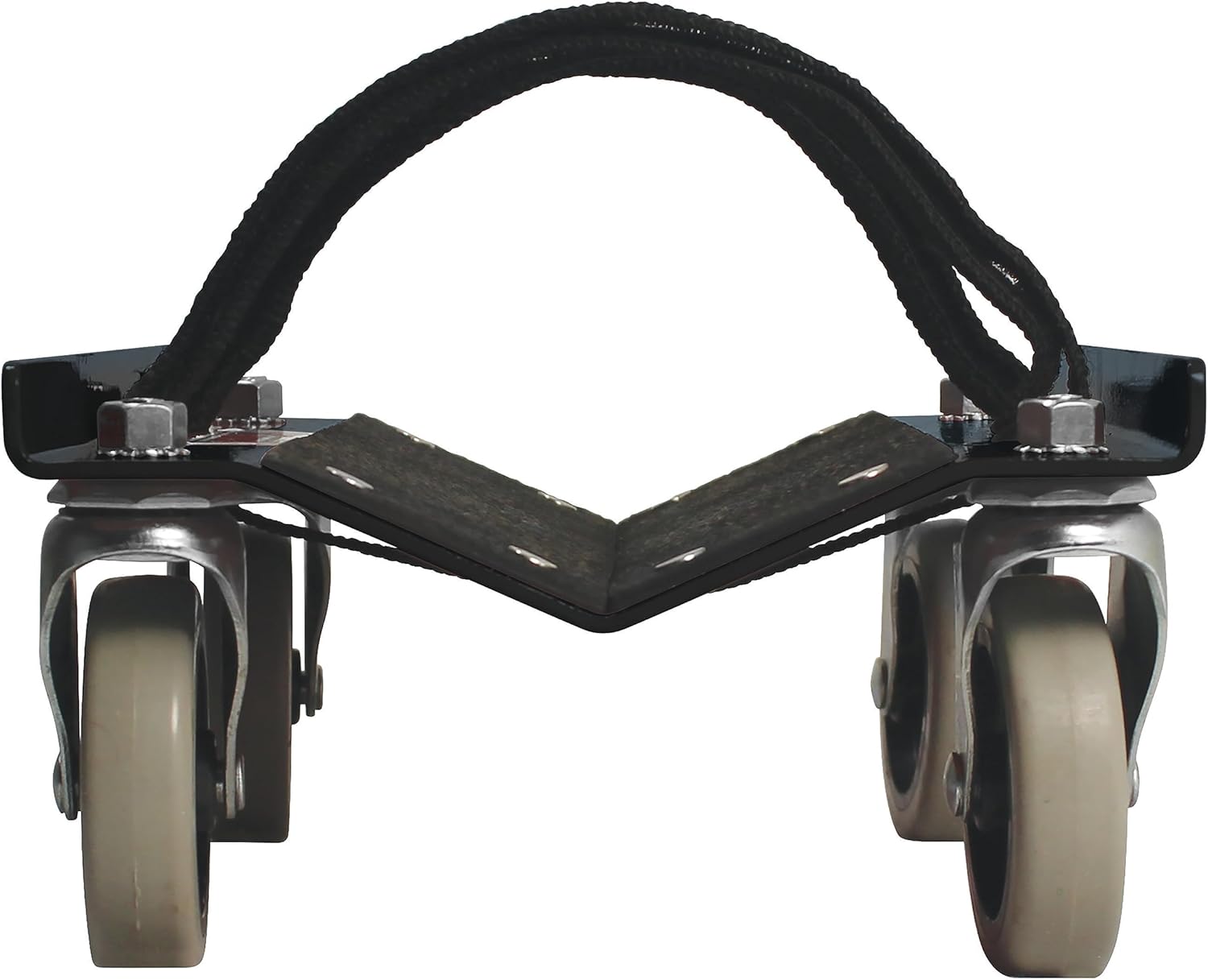 The V-Slide dolly system is ideal for all snowmobiles and fits all ski widths. Our dollies come with “Easy Roll” casters for both the front and rear plates. These casters have oversized 3" wheels with two ply construction and a sintered steel center bushing. This makes the wheels both tough and easy to move. In side by side comparisons our V-Slide system reduced pushing effort by 50%. Our heavy-duty front plates have double lock straps to assure that the ski stays firmly attached on any surface or direction. The front plates measure approximately 8" long x 10" wide x 4" tall. The rear plate measures approximately 8" across x 4" tall.