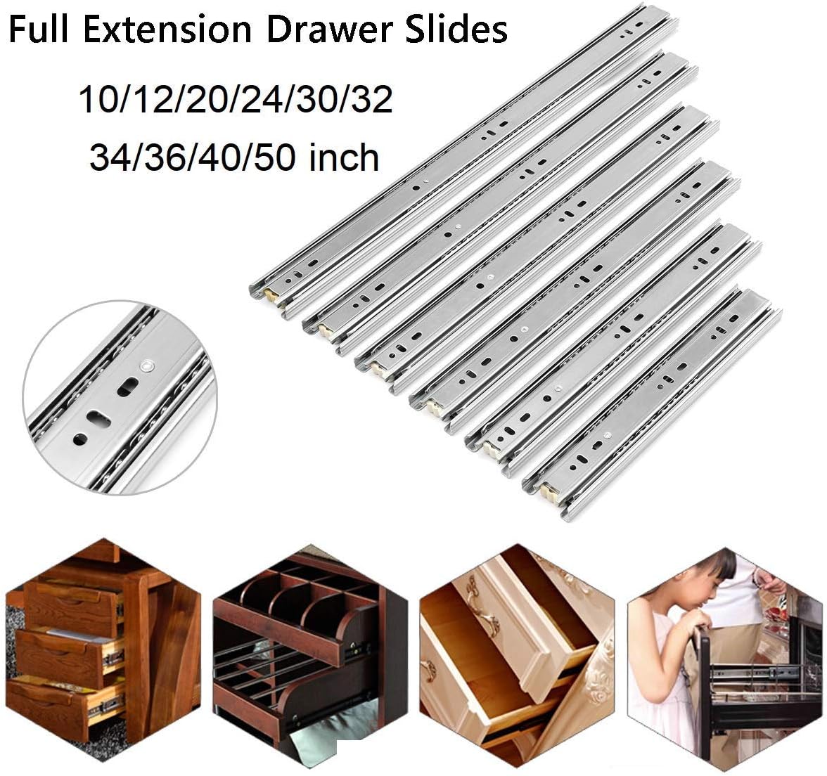 Load rating: 400 lb (vertical), 50 lb (horizontal) Exceptionally smooth and quiet; steel ball bearings One set includes two drawer slides Retracted length: 36" Extended length: 72" Quick release button on rails allows for easy mounting and drawer removal