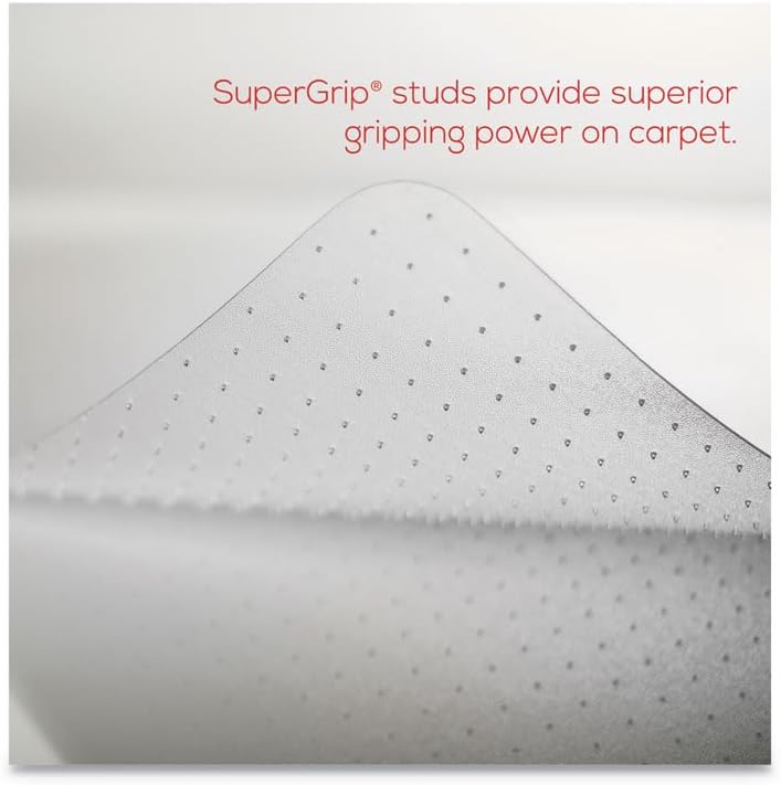 Economical, protective vinyl chairmat prevents wear and tear and extends carpet life. For occasional office use on carpets up to 1/4" thick, Low Pile/Commercial Grade; choose a higher pile chairmat if daily usage is over four hours. Easy-glide rolling surface provides effortless chair movement. Free and Clear non-phthalate, non-cadmium formula promotes a healthy work environment while offering exceptional clarity and durability. Straight edge.