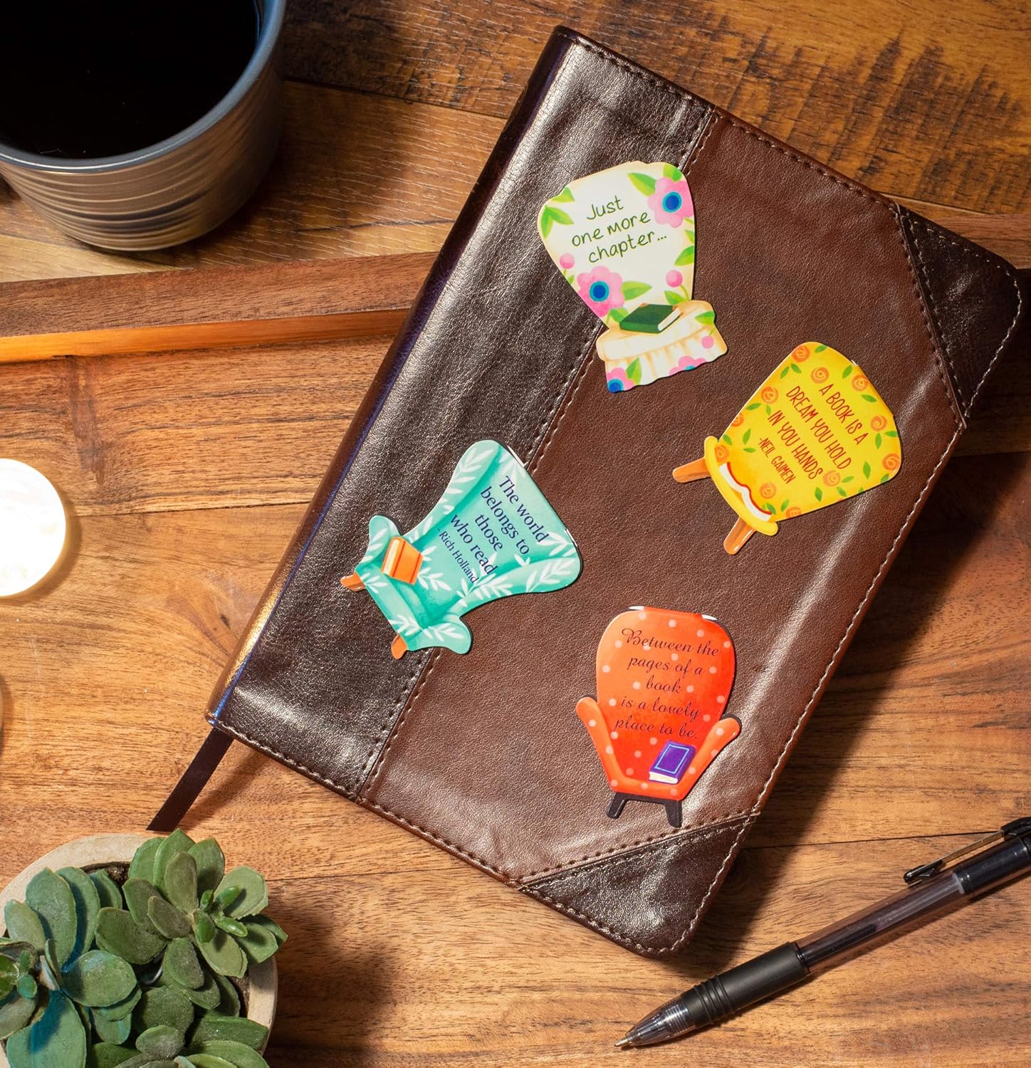 Charming bookmark feature 4 magnetic cozy chairs with sentiments perfect for the book worm in your life Decorative magnet and bookmark are made of a durable vinyl material; Spot clean Decorative spot holder measures approximately 2.5 x 2 inches Perfect way to creatively hold your place in your favorite book Contained in protective packaging; Ready for gifting