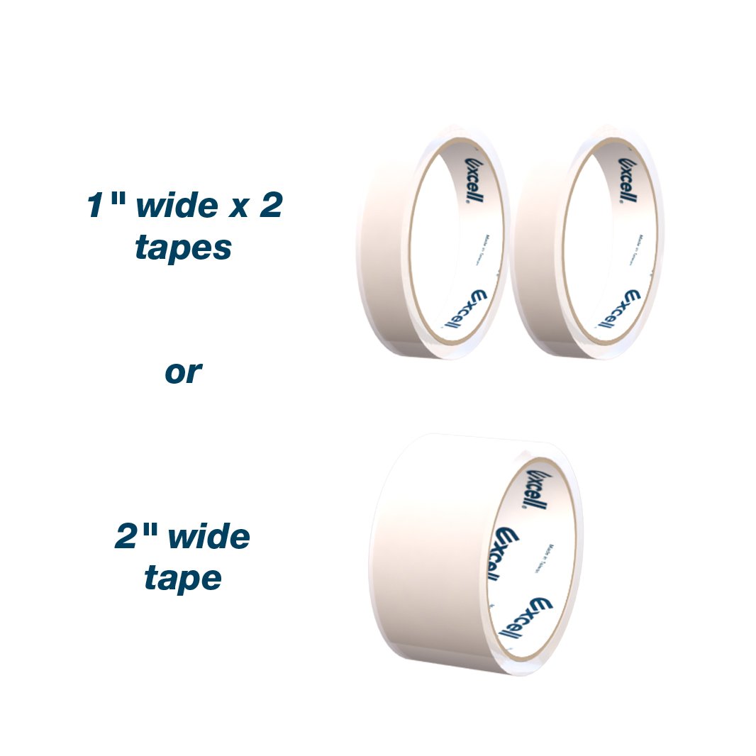 - The 2-inch Excell EX-17 dispenser comes with two 1-inch wide rollers so you can use the dispenser for one 2-inch wide roll or two individual 1-inch wide tape rolls.