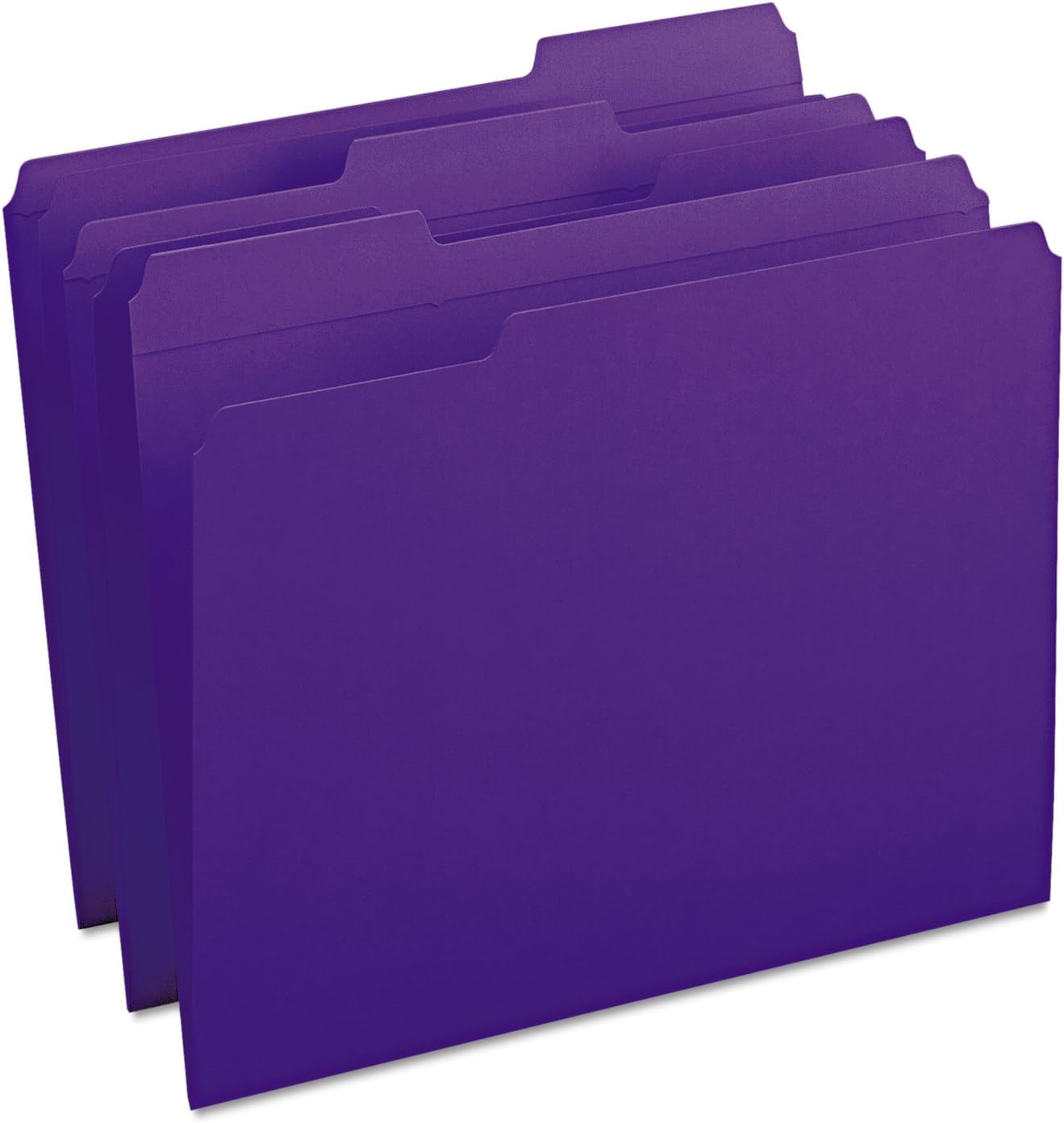 Reinforced tabs for extra durability and longer life. Use color for categorizing. This product was made using wood sourced from a certified managed forest. File Folder Type: Top Tab; Size: Letter; Folder Material: 11 pt. Stock; Color(s): Purple.