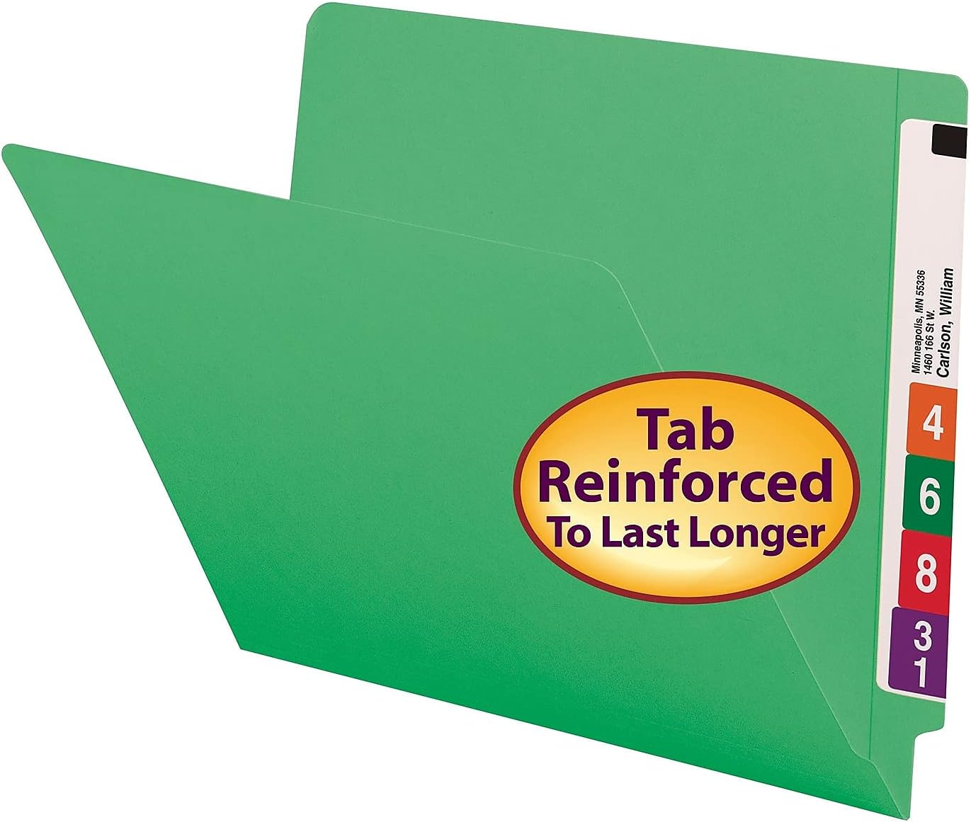 Perfect for color-coding in open shelf filing systems. Reinforced tabs for extra durability. Labels sold separately. This product was made using wood sourced from a certified managed forest. File Folder Type: End Tab; Size: Letter; Folder Material: 11 pt. Stock; Color(s): Green.