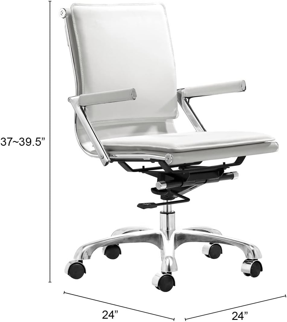 With its ergonomic shape, padded back and seat cushions, the Lider Plus office chair works in comfort. It has a chromed steel frame with soft neoprene arm pads, a locking tilt adjustment, and rolling base. DISCLAIMER: Zuo Modern Contemporary, Inc. is not affiliated with Herman Miller, Inc. and its products are not affiliated with Eames Aluminum Group or Softpad products.