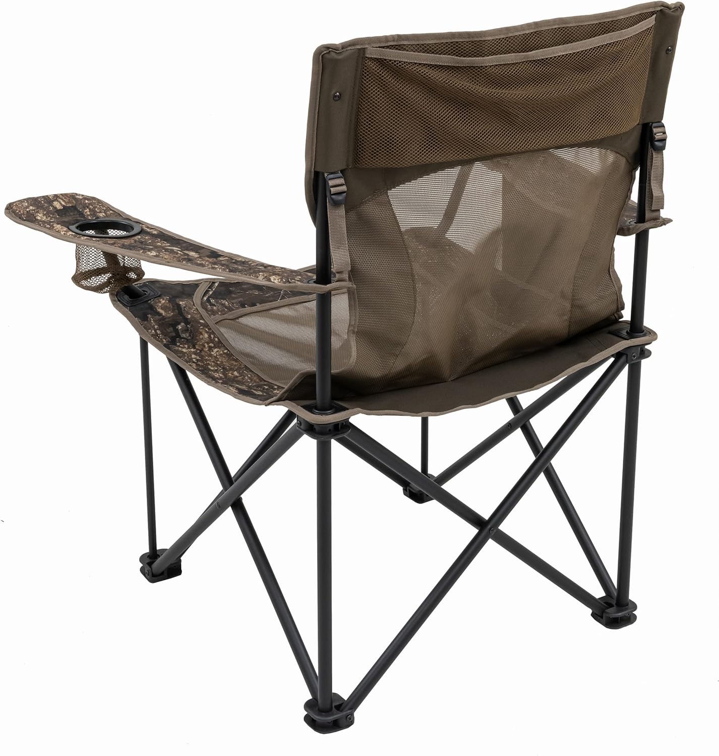 Sturdy powder-coated steel frame wrapped with 600D polyester fabric Cool reinforced mesh center helps add extra breathability during those hot summer days Insulated cooler pouch in Arm Rest allows you to keep your beverages and food cold during use Use the Browning Kodiak Chair for your next BBQ, sporting event or camping trip; shoulder carry bag included Dimensions: 38" W x 20" D x 38" H; Weight: 13 lbs., Weight Capacity: 800 lbs.