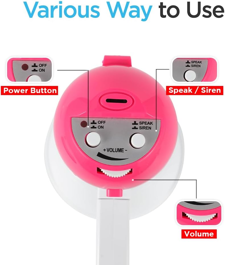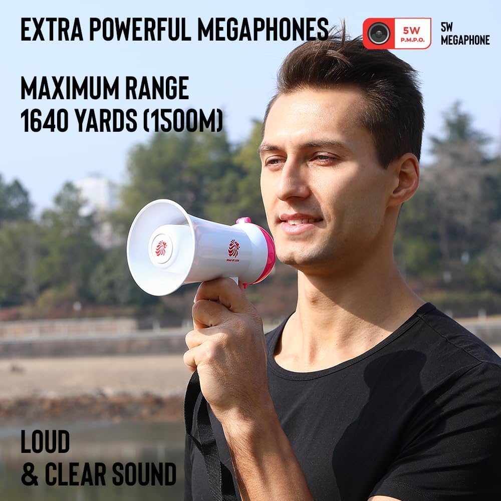 HIGH-QUALITY MATERIALS AND CONSTRUCTION: Our megaphone is built to last, thanks to its high-quality materials and solid construction. Made from durable plastic, this megaphone can withstand regular use without losing its functionality or performance. ACCURATE AND DETAILED PRODUCT DESCRIPTION: We believe in providing our customers with realistic expectations, which is why our product description is accurate and detailed. BATTERIES NOT INCLUDED: Our products do not include batteries. For this version you will need 4 AA Type batteries. GREAT MEGAPHONE FOR CHILDREN And KIDS: This bullhorn has 5W of power, making it ideal for children to play. With its loud and clear sound projection, you can effectively communicate with large crowds or across long distances. COMPETITIVE PRICING: We offer competitive pricing for our high-quality megaphone, providing great value for the quality and features provided. Compared to similar products on the market, our megaphone offers a cost-effective choice without compromising on performance or durability. Invest in a megaphone that offers exceptional value for your communication needs.