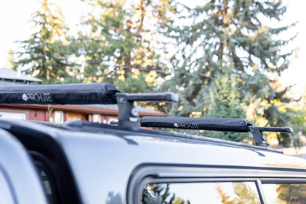 Flat roof rack pads designed for 3" wide flat bar car racks. Cut 31" wide to accommodate SUP boards. Velcro closure system. Black, cube-tech rip stop poly material.