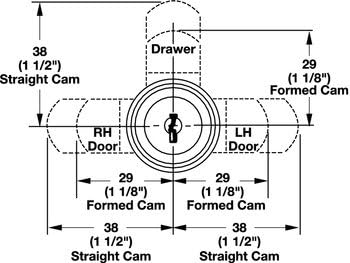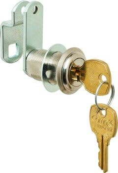 Compx National disc tumber cam lock supplied in nickel finish, with 1-3/16" overall length designed to fit material a maximum of 7/8". Each Lock supplied keyed alike to C420A key number with 2 keys supplied with each lock. A flat and offset cam supplied with each lock to accommodate various installation requirements.