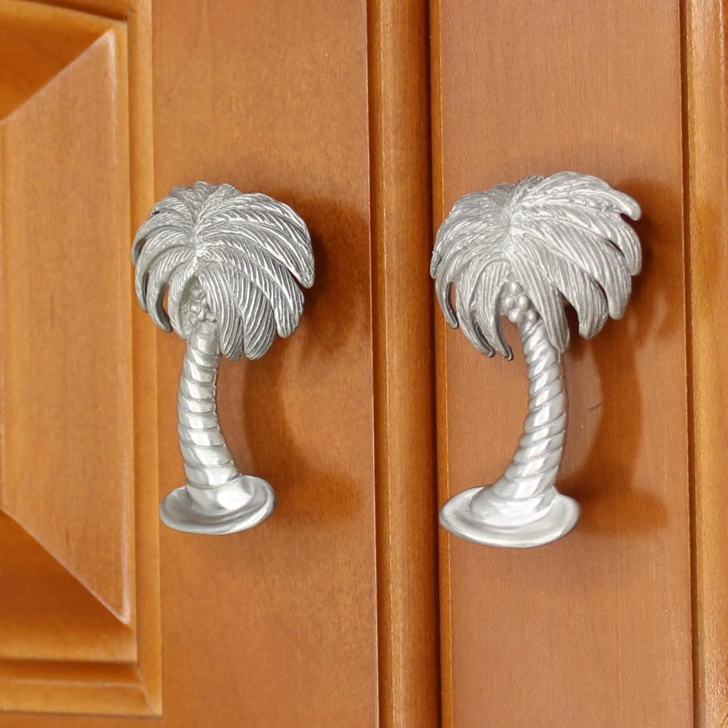 ✅ DESIGNER COLLECTION: Copyrighted sculpture by marine artist Peter Costello ✅ HIGH-QUALITY CABINET KNOBS: Add instant island appeal to your cabinets or drawers and enhance your furniture with marine artist, Peter Costello’s, coastal cabinet knobs. Made of solid pewter our palm tree knobs epitomize beach house decor. They are sturdy and provide a comfortable grip that makes opening and closing effortless. ✅ MODERN COASTAL DESIGN: Inspired by summer days walking the beach Peter’s palm tree drawer knobs will not only remind you of ocean air and beach sand but will also add functional beauty to your cabinetry. These pewter knobs complement any color scheme or beach décor — be it contemporary, traditional, or modern. ✅ BRUSHED PEWTER FINISH: Our palm tree knobs are cast in pewter to ensure durability and longevity. Their neutral brushed finish complements any style of cabinet or furniture. The mounting post has a brass thread insert for secure installation and prevents the screw from ever stripping out. ✅ EASY TO INSTALL WITH OUR 1” SCREWS: Our knobs are designed to make installation very easy. Each knob comes with a 1-inch mounting screw. All you need is a drill with the 5/32 inch bit and screwdriver to install. ✅ LEFT & RIGHT LEANING FOR DESIGN SYMMETRY: Have a set of cabinet doors to upgrade? Add a matched pair of swaying palms to complete the look? Like many of Peter Costello’s designs, these knobs are available in left and right orientations (and a matched pair!) for design symmetry