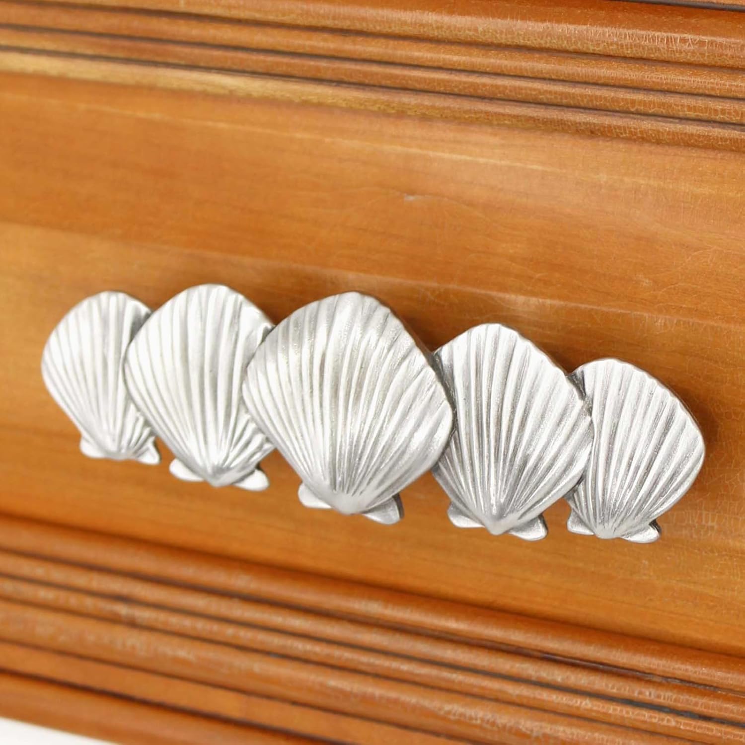 ✅ PREMIUM CABINET HANDLES: Update your cabinetry and furniture with our stylish coastal cabinet pulls. Made of high quality pewter our cabinet handles are sturdy and provide a comfortable grip making opening and closing your drawers effortless. ✅ UNIQUE COASTAL DESIGN: Inspired by the beauty of scallop seashells, Peter Costello’s stunning design will not only remind you of those wonderful sea creatures but will also add a unique coastal touch to your cabinetry. Creating a spatial flow between your home and the ocean they will complement every color scheme and beach decor—be it a, contemporary, traditional, or modern theme. ✅ HORIZONTAL AND VERTICAL ORIENTATION FOR DESIGN SYMMETRY: Need this for a cabinet door (vertical) or drawer (horizontal) use? Don’t worry. These pulls are available in both horizontal and vertical orientations. ✅ BRUSHED NICKEL FINISH: Our unique coastal-themed drawer pull is cast in solid pewter to ensure durability and longevity. They have a brushed finish that has a neutral silvery shade to elevate any cabinet or furniture style. They are smooth to the touch and sure to create a sculpted appeal that’s not only eye-catching but also created for 100% usability. ✅ TWO 1” SCREWS FOR EASY INSTALLATION: Our handles have two mounting posts (3-inches apart on-center) with brass ferrule threads to make installation secure and prevent the screws from stripping out. The package includes two 1-inch mounting screws to make things more convenient while remodeling your kitchen, living room, bathroom, or bedroom cabinets. All you need is a ruler, drill, and a screwdriver for installation. ✅ AVAILABLE IN LARGE SIZE: Our Scallop Seashell drawer pull comes in a large size (5 by 1.5 inches) to match your home decor needs. Perfectly sized for medium or bigger surfaces, these sand dollar handles work well on cabinet doors and drawers, dresser drawers, pantry, wardrobe, closet doors, or even as handles for boxes and trays.