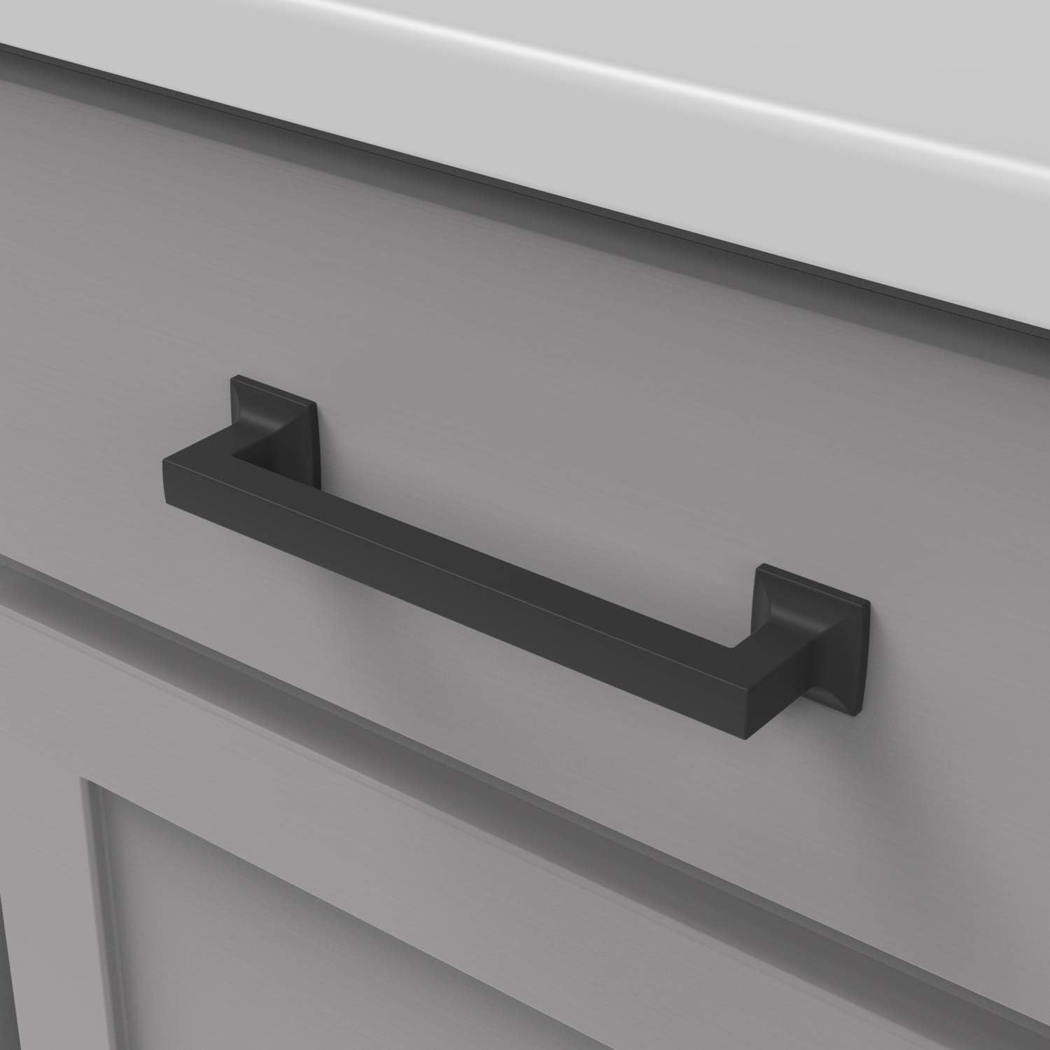 6-5/16 Inch (160mm) Center to Center; Projection: 1-3/8 Inch; Length: 7-1/2 Inch; Width: 1-1/8 Inch The Matte Black finish coordinates with most black interior elements. The true black color is sealed with a low sheen lacquer. Matte Black adds bold and dramatic flair to a modern space This collection draws upon classic and timeless design elements This collection is a trendy update for transitional spaces