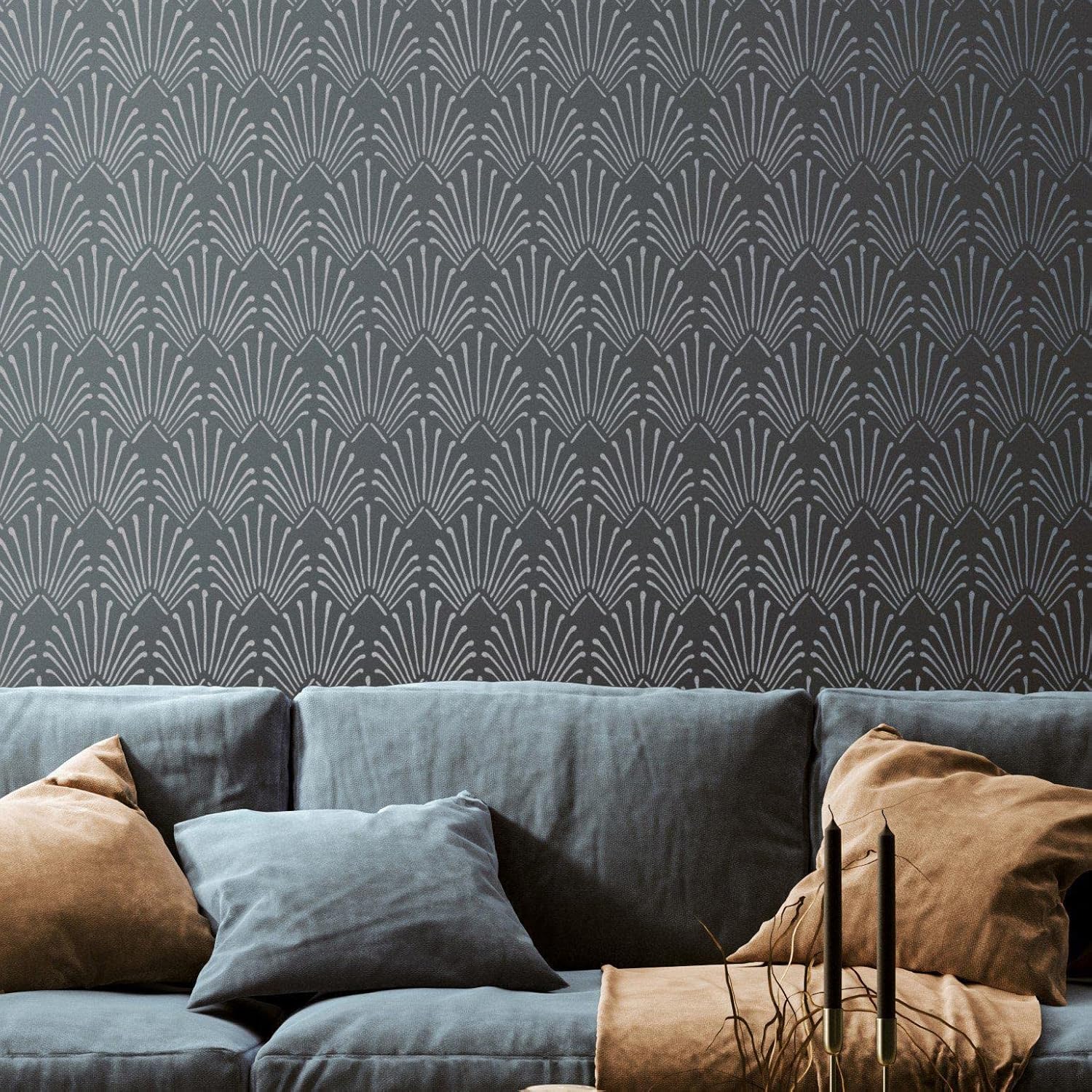 This Modern Art Deco Stencil - is the economical and fastest way to achieve the look of the designer wallpaper! But unlike the decal or wallpaper- with our reusable stencil you can create a unique color scheme! Even if it will be your first stenciling project, this wall stencil is perfect for beginners- any paint bleeds will simply go unnoticed due to the “hand-drawn” pattern of this stencil! Also, we made a video tutorial that demonstrates that the stenciling project can be easy and fun! This allover wall stencil is available in three sizes (see the last image for the measurements) S (18.3" x 21") M (21" x 32.3") *Comes With A Free Top Part Stencil L (21" x 46.35") *Comes With A Free Top Part Stencil NOTE: This is a reusable stencil (not a wall decal). You can paint as much surface as you want with this single minimalistic modern wall stencil (see the last image for the measurements). **********HOW TO CHOOSE THE SIZE (S, M, L, XL, XXL) ********** All sizes (S, M, L) have the same pattern size, and the difference is only between the overall stencil sheet size. S- size is the best for furniture painting and small/tight areas. Also, people often choose this stencil as an addition to M or L, because it is the most comfortable size to work with beneath the ceiling or tight spaces. M-size is the most common choice. L, XL, XXL -size is made for the preferably large areas and makes it possible to cover the largest area at one time. This size better to choose if you have experience in stenciling. Don’t forget to see our other ALLOVER STENCILS You alwayscan request acustom stencil. 661