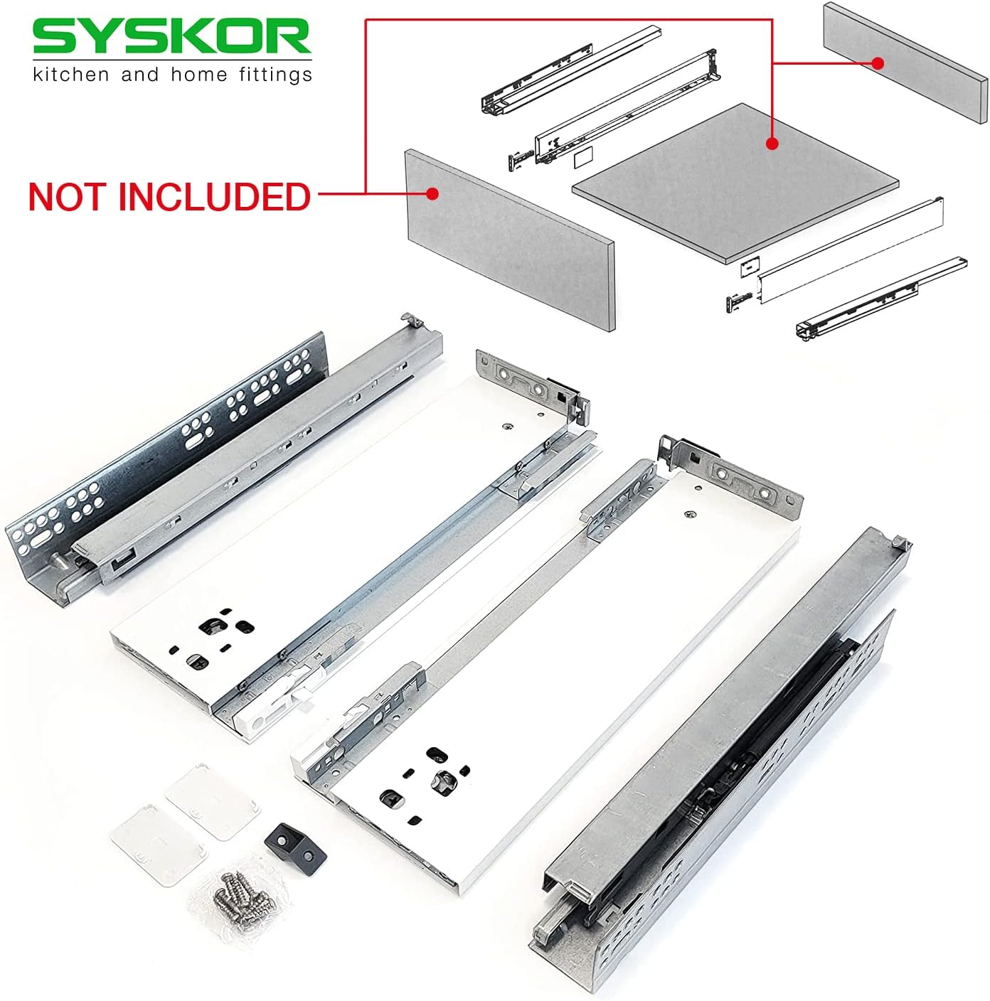 SYSKOR Metal Drawer Box, Soft Close, Full Extension - 4.7 H x 20 D - Includes Heavy Duty Undermount Slides, 88 pounds Capacity - White (T72A01500)