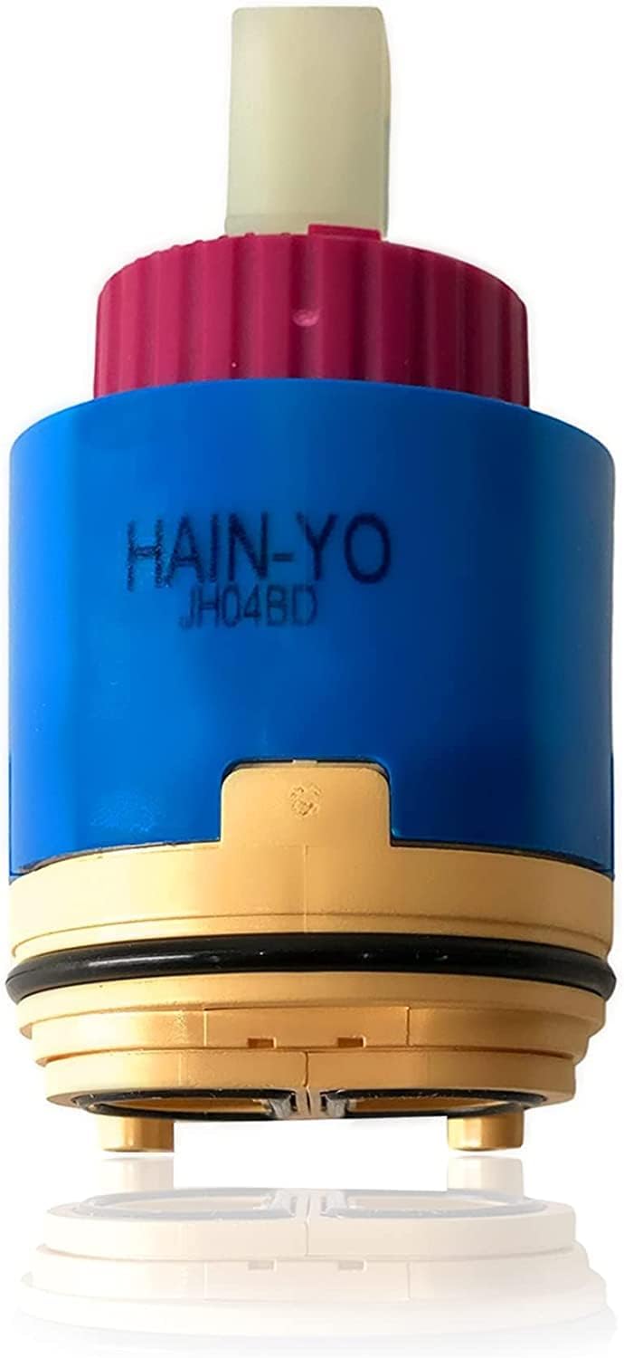 Compatibility: Designed to replace the mixing pressure balance cartridge on many faucet brands; Glacier Bay, Belanger, Aquasource, and many others. Common part numbers that this cartridge replaces are as follows: Kissler 46-6269, Belanger FC9AC010, Hain-Yo JH04BD, and others. Easy Installation: Install your new valve in 7 easy steps 1) Shut off water to faucet valve 2) Remove handle index button or set screw 3) Remove handle screw with a screwdriver, turning counter clockwise 4) Remove retaining nut by turning counter clockwise 5) Pull old cartridge out of valve 6) Grease and insert new cartridge 7) Reinstall retaining nut and handle (General instructions on faucet cartridge replacement, additional steps may be required) Functionality: Designed with OEM quality in mind by the precision faucet cartridge makers at Hain-Yo. This cartridge precisely mixes hot and cold water for the correct temperature and pressure. Dimensions: The JH04BD mixing cartridge measures 3-⅛ inch (78 mm) in length. The outer width measures 1-⅝” (40mm). Intensely tested by the manufacturer to ensure the cartridge can meet the demand of your shower. Value: Economical valve versus replacing the entire valve. The JH04BD compatible cartridge is a tremendous valve and provides the correct part to fixing your plumbing issues. The JH04BD is a great part to use for either the plumbing professional or a DIYer with a compatible valve body installed already. Other Components: The JH04BD boast a square plastic handle adapter with threads for handles utilizing a handle screw. This cartridge can be easily replaced with your existing handle.