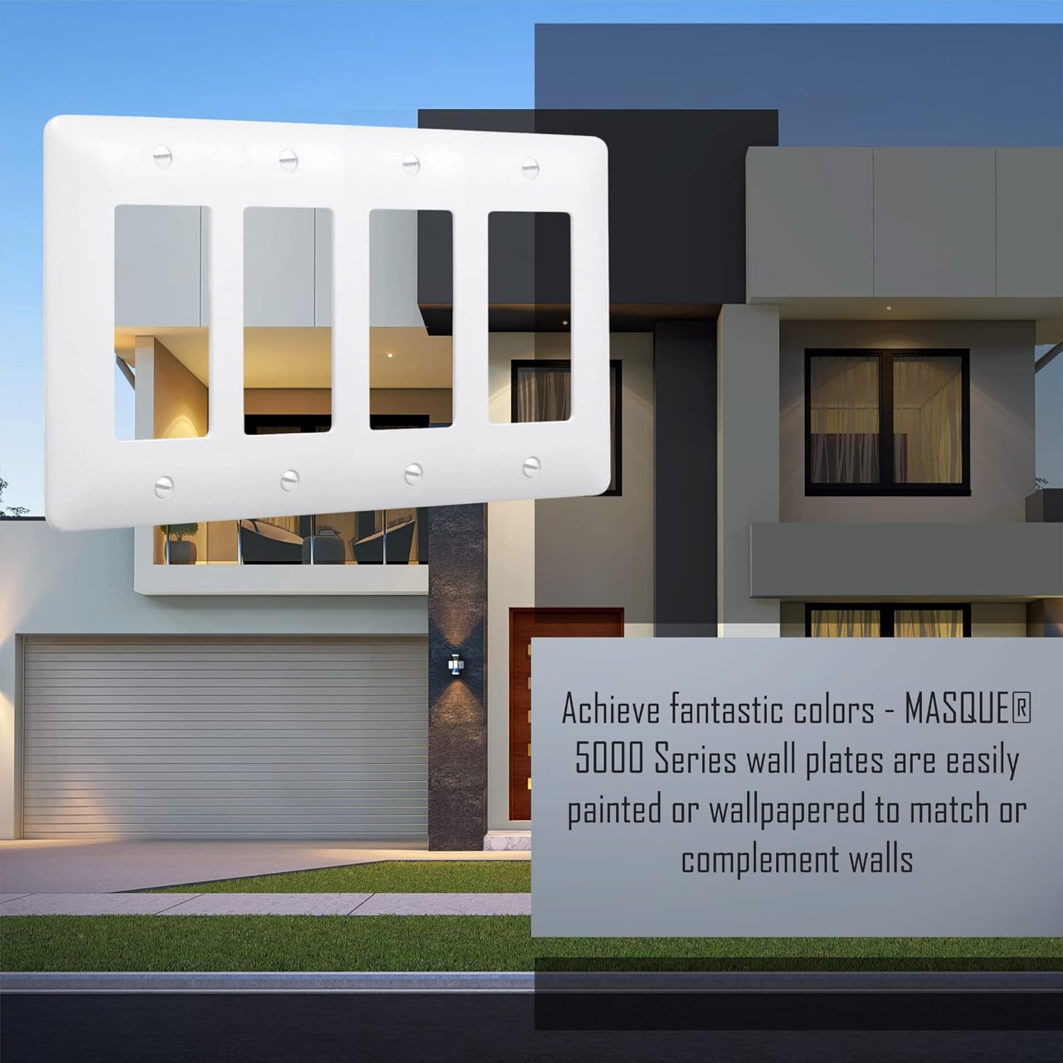 Achieve fantastic colors - MASQUE 5000 Series wall plates are easily painted or wallpapered to match or complement walls Unbreakable premium plastic wall plates Won’t not crack or distort during installation Hides outdated, discolored outlets Customize with MASQUE adapters Includes screw(s) in matching finish