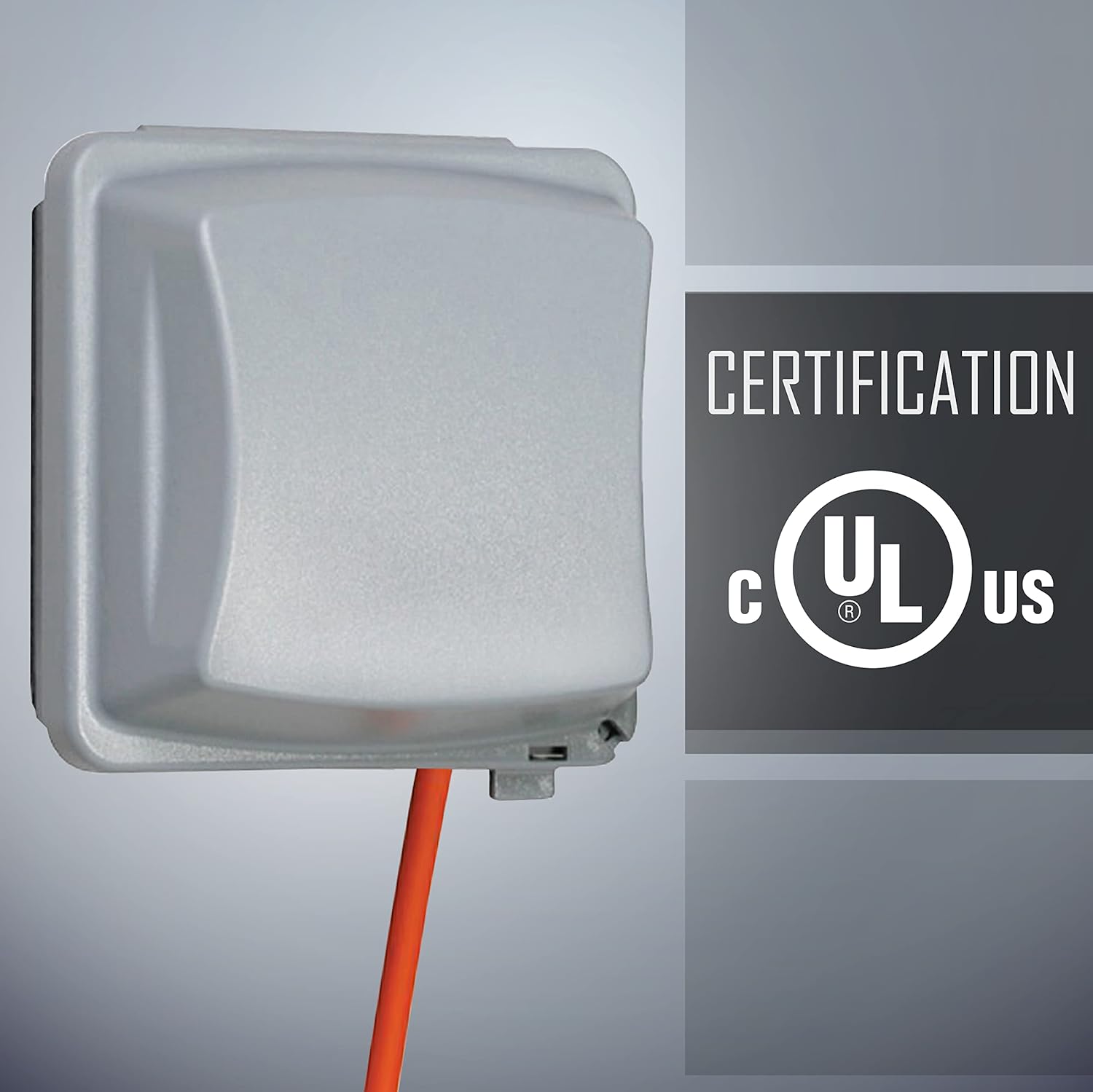 WEATHERPROOF COVER: Get maximum toughness and protection. Our 2-Gang Weatherproof In-Use Electrical Outlet Cover for home improvement is NEMA rated and UL listed for wet and damp locations. EASY TO INSTALL: Set up your outdoor outlet cover in no time at all. Our Quick-Fit keyhole mounting system allows installation in under a minute with a patented EZ Change Pin for horizontal or vertical mount. 55 CUSTOM CONFIGURATIONS: Our weatherproof outlet cover uses Universal Fit Adapter system Technology for 55-in-1 custom device configurations. You can mount and protect duplex, round, switch, or GFCI. QUALITY CONSTRUCTION: Our socket cover for outlets is built from high-impact polycarbonate for maximum durability. You have more room for electrical cords and it includes gasket and mounting hardware. SAFE AND SECURE: Our weatherproof cover is tested and certified to UL and NEMA standards. The lockable tab can be secured with a full-size padlock for protection against tampering.