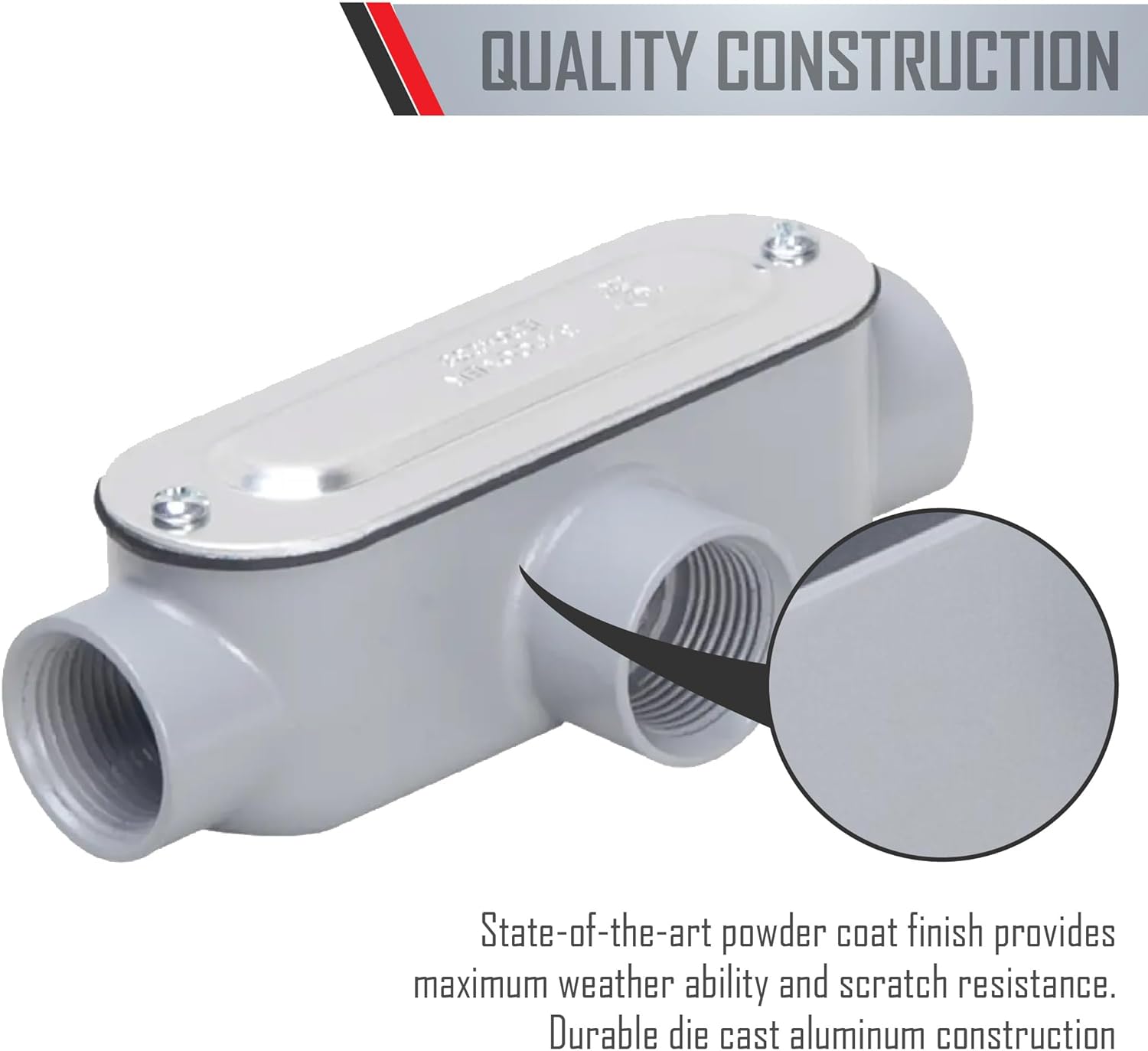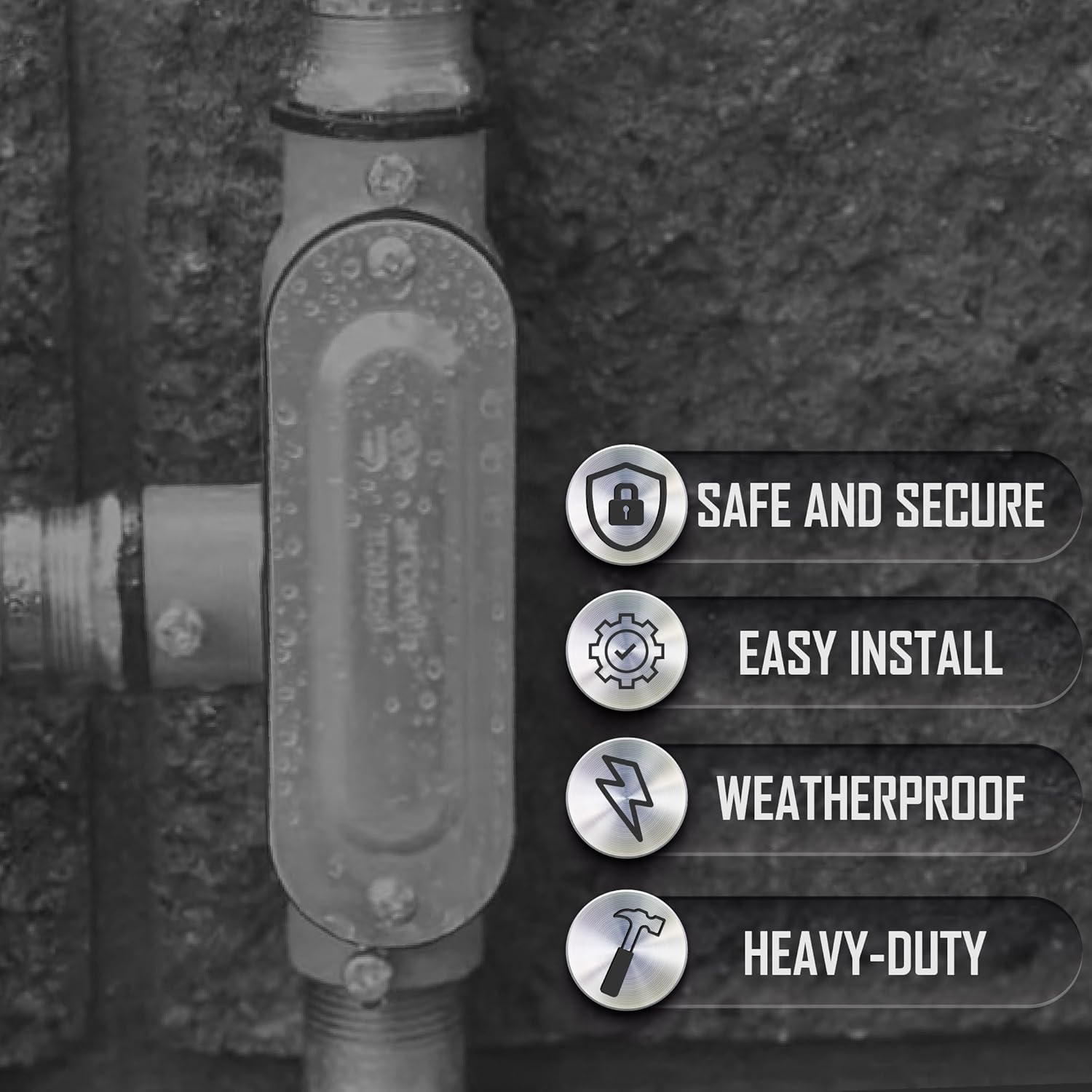 Durable die cast aluminum construction Premium powder coat finish Includes NBR synthetic rubber gasket Stamped aluminum cover Combination head screw