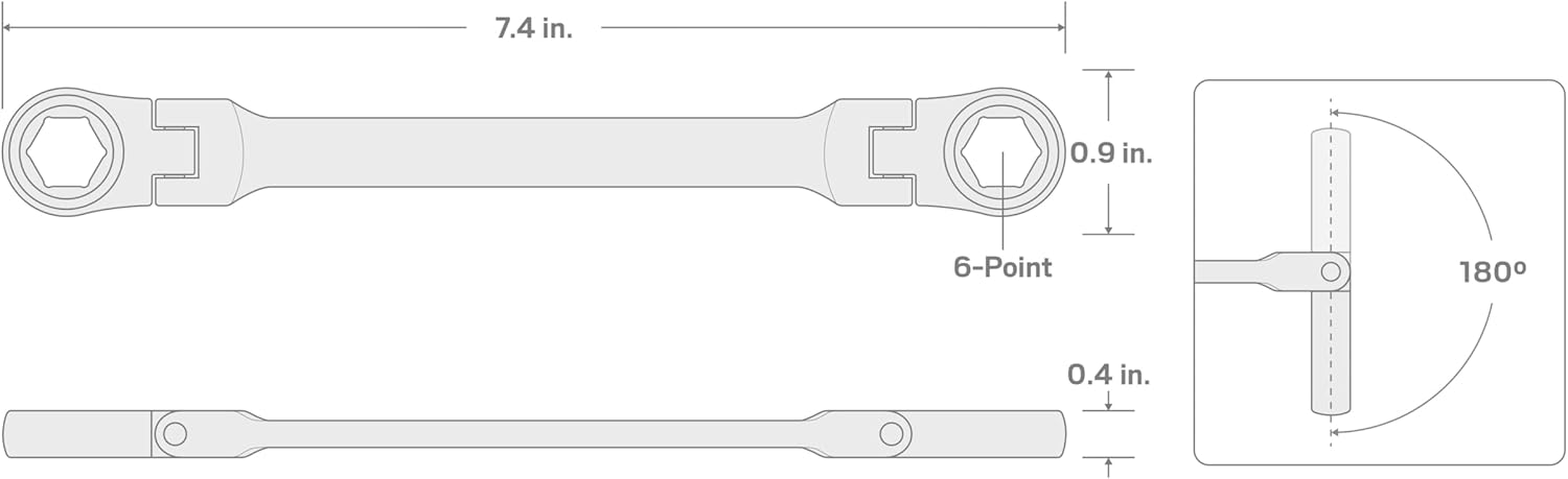 Box end heads pivot 180 degrees to easily get around obstructions 6-point box ends snugly fit hex-shaped fastener heads and resist slipping off while you work Openings are designed to grip flat sides of fastener heads, not corners, to prevent round-off 72-tooth ratchet gears need only a 5-degree working swing arc