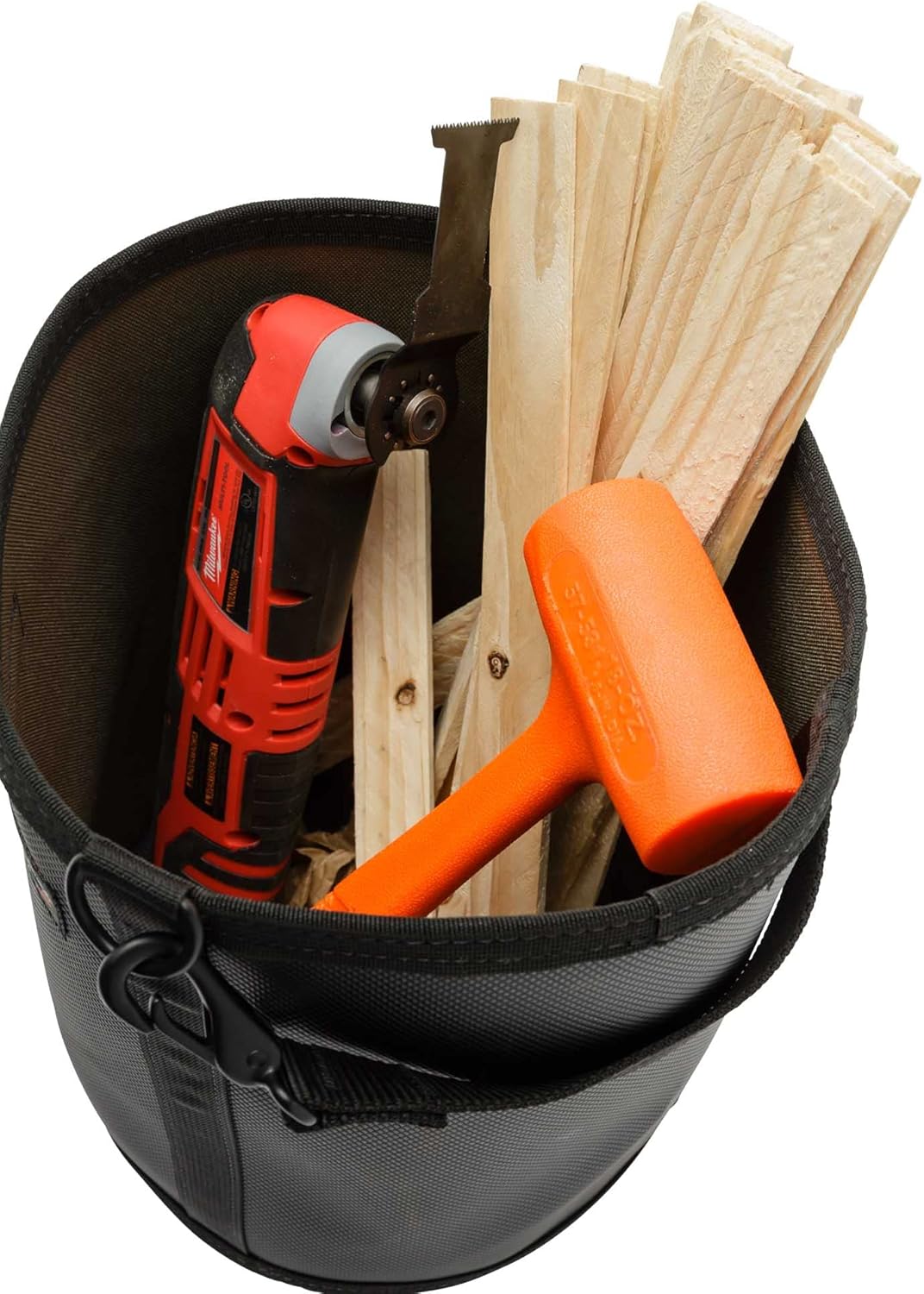 The Diamondback Skopa Bucket is an all-purpose utility storage container that satisfies any and all needs you have on the jobsite for transporting and storing…well, just about anything. The Skopa tool bucket is constructed with Diamondback DiamondSkin, making it extremely durable and lightweight. Carry large or odd shaped tools, haul small debris from your work area, or store rags, sponges and other miscellaneous items. No hard plastic at the bottom, so it won’t scratch finished surfaces. The Skopa comes standard with a 12.5″ webbing handle. Add a GoStrap to carry it over your shoulder.