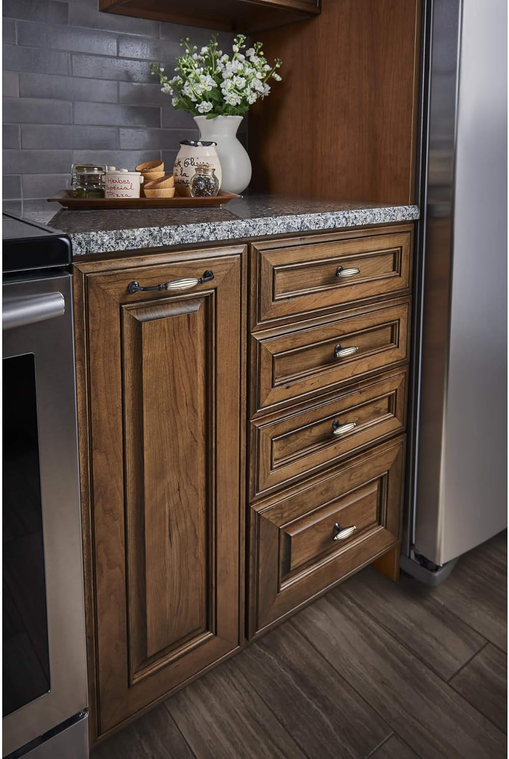 Center to Center: 5.06" - Length: 5.75" - Projection: 1.5" - Width: 0.75" Pulls Category Dark Antique Brass Finish Classic Style