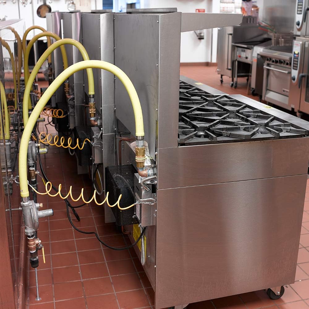 48" coated gas appliance connector 3/4" NPT male freespin inlet 3/4" NPT male freespin outlet 3/4" NPT female quick-disconnect Street elbow included